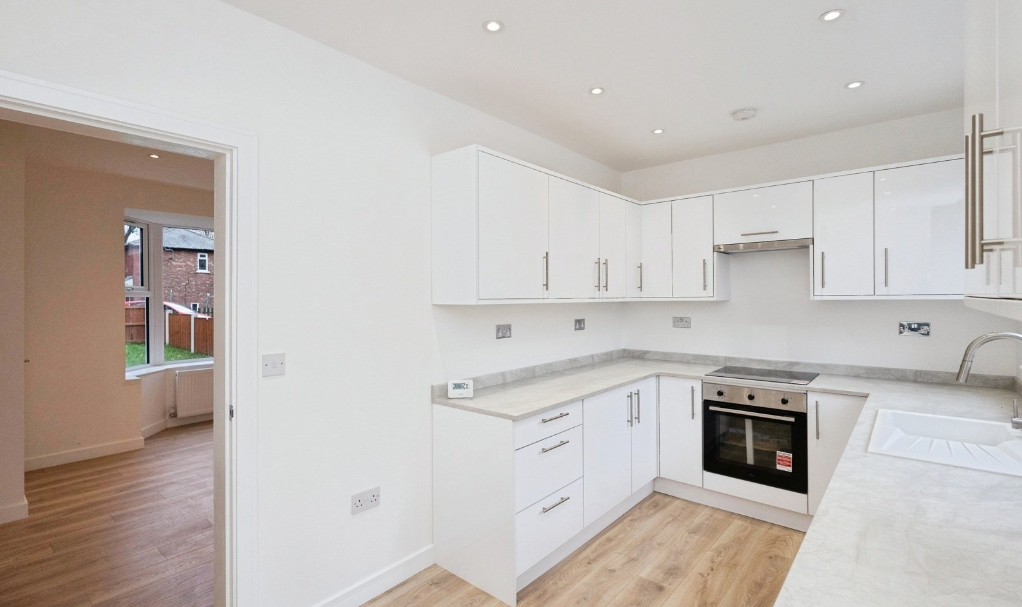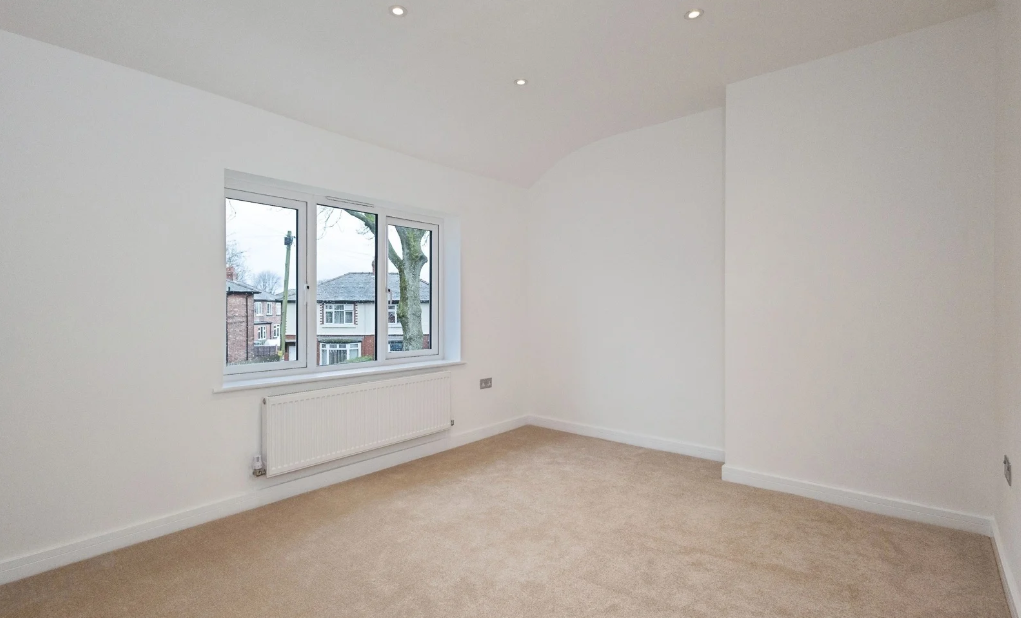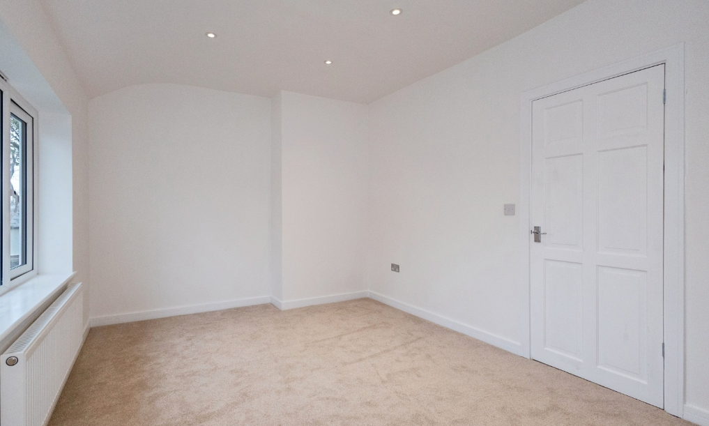 This refurbishment property required a full strip-back to brick, followed by new stud walls, insulation, boarding, and plaster boarding throughout.