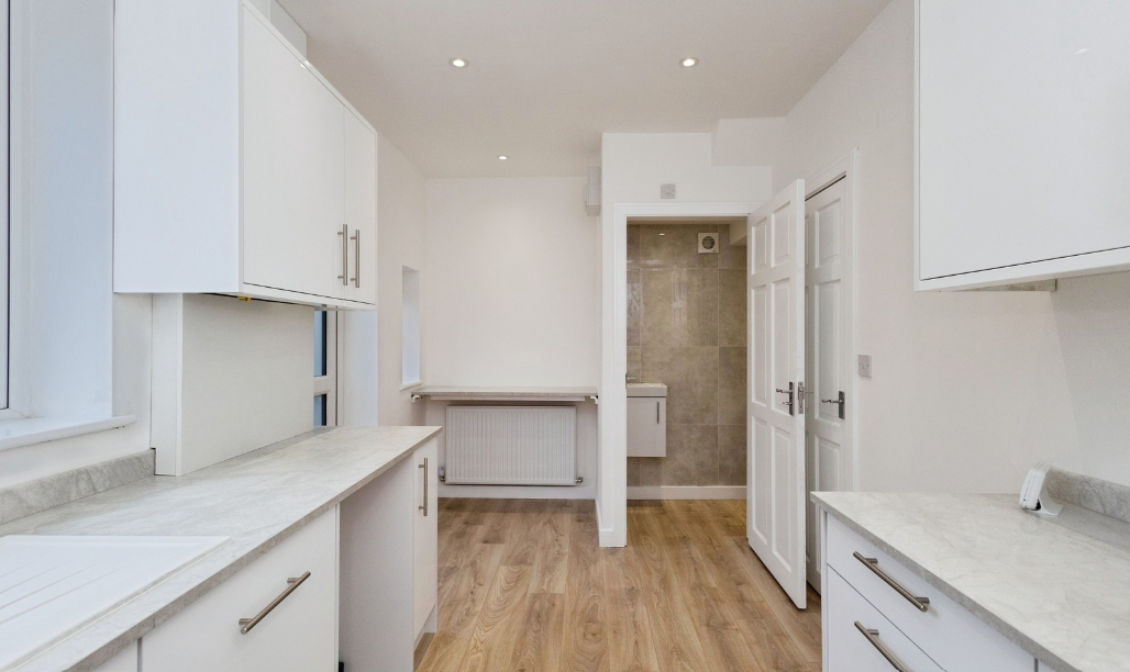 A single rear extension under permitted development to create a large open plan kitchen. This required mini piling to protect underground pipework, plus block and beam flooring.
